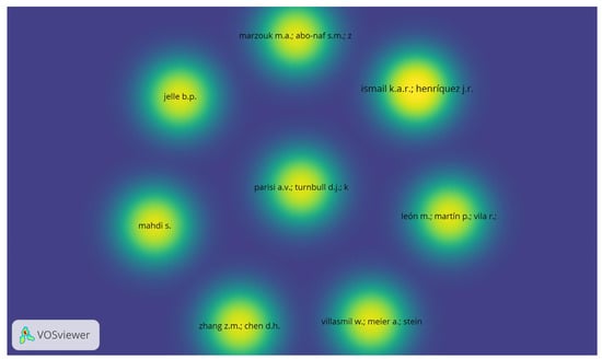 Scholarly collaborations among researchers, industry professionals, and governmental agencies foster expertise, alleviate the digital divide, facilitate grant accessibility, and enhance productivity. An analysis of authorship offers a deep understanding of these networks. A total of 357 authors contributed to the research corpus of 79 articles on ultraviolet radiation transmission used for the review. The research output strength of key authors in the field is depicted in Figure 6. A lack of collaboration among authors within the network map underscores the need for increased cooperation among researchers.