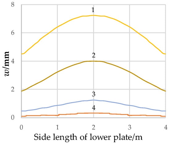 3.3. Influence of Side Length of Upper and Lower Plates on Calculation Results of Plate Deflection