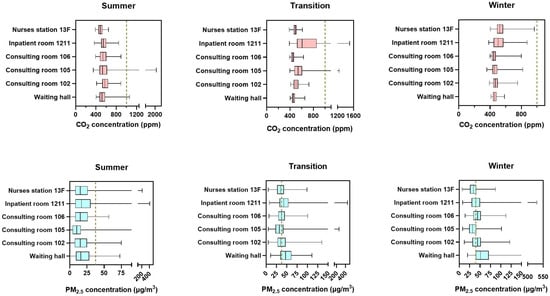 The distribution of CO2 and PM2.5 concentrations is depicted in Figure 6.