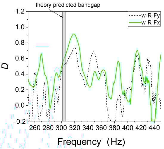 5.1. Predicted Bandgap Width and Measured Vibration Mitigation Frequency Range