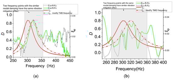 - The frequency range with higher modal damping has a better vibration reduction effect. Specifically, the vibration mitigation effect at two frequencies with equal modal damping in the modal damping curve is equivalent;