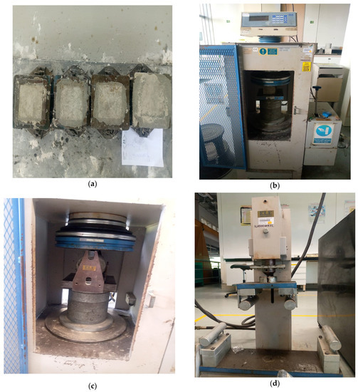 (a) Sample preparation, Equipment for testing of (b) CS (c) STS (d) FS.