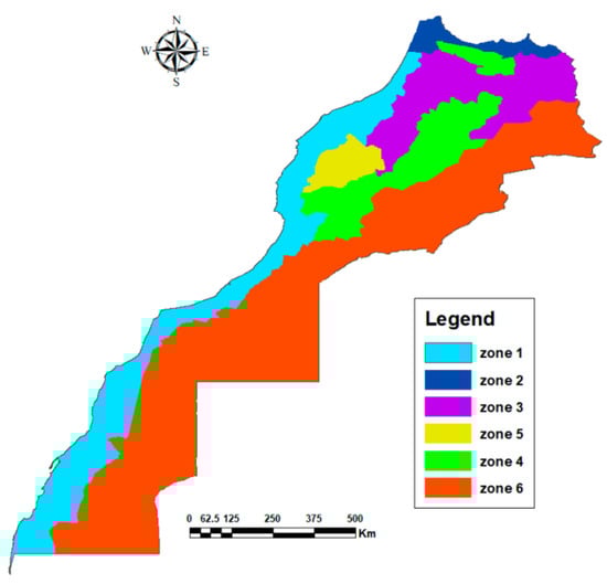 Morocco has a land area of 710,000 km2 and a strategic location bordered by Algeria to the east, Mauritania to the south, the Mediterranean Sea to the north, and the Atlantic Ocean to the west. The maritime zones of this country are characterized by their 3500 km of coastline. The climates of nation are more varied as a result of this extensive coastline [35,36,37]. Thus, diversification and climate change directly impact architecture, construction materials, and energy consumption in buildings, which is considered to be currently one of the main global problems [38,39,40]. To address this issue, some nations are proposing various building energy efficiency plans and initiatives that take climate zoning into account. These proposals or stipulations are an essential basis for developing energy efficiency initiatives [41]. In the same context, studies indicate that energy efficiency may be increased for homogeneous and small climatic zones, hence enhancing the thermal comfort of occupants within buildings [42].