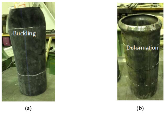 Figure 1 depicts the steel tube (i.e., the steel circular hollow section) used in this present experimental study. The mild steel tubes had a yield strength of 285 MPa when tested in tension in accordance with ASTM-E8 [53]. The steel tubes’ axial load–displacement curve under axial compression is depicted in Figure 2.