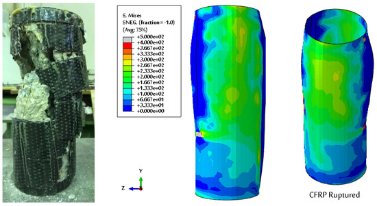 Experimental versus numerical failure modes of the GP-CFRP-Ann specimen.
