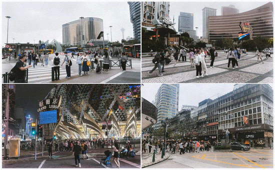 The Urban Master Plan of the Macau SAR (2020–2040) explicitly supports the development of Macau as a world tourism and leisure center, promoting moderate, diversified, and sustainable economic development. However, through on-site investigations, it was found that during holidays, with the continuous increase in the number of tourists, the actual effectiveness of urban space utilization in Macau became imbalanced, and the historical city areas were overloaded. Problems such as mismatches between the number of tourists and spatial capacity have emerged (Figure 3). Therefore, in-depth research on the perceptions of urban space users is of great practical significance.