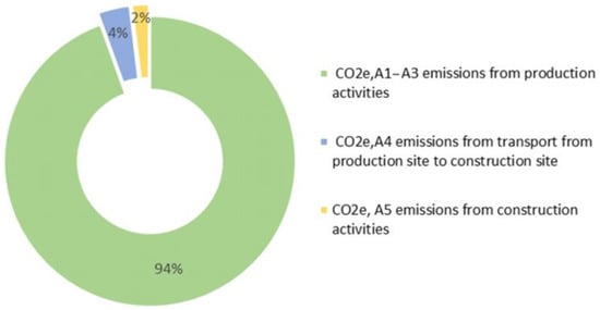 Σ CO2e, A1–A3 (i): Summation of emission contributions made in the production phase (A1–A3) by all materials in the construction.
