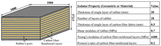 Earthquakes have caused severe devastation worldwide, resulting in huge losses to the ecosystem. The ill-effects of earthquakes are well recognized, and thus, it is of prime importance to investigate innovative means of vibration control of the built infrastructure, in order to make our societies earthquake resilient. Traditionally, base isolation systems (BISs) have proven their efficiency in the seismic vibration control of structures [,,]. A detailed account of the working principles and the different types of BISs is provided in the subsequent section. Amongst BISs, steel-reinforced elastomeric isolator (SREI), also known as laminated rubber bearing, is one of the most commonly used seismic isolators. Although the SREIs are efficient in the seismic isolation of structures, they are costly in terms of fabrication, and also, they are heavy in weight, which makes the installation of SREIs more labor-intensive, apart from the increased transportation costs from fabrication shop to the construction site. Due to these factors, researchers have replaced the steel shims of the conventional steel-reinforced elastomeric isolators with fiber reinforcements, thus giving rise to the fiber-reinforced elastomeric isolators (FREIs) []. Apart from being much lighter in weight, the FREIs can also be utilized without any fixed attachment with the structure, i.e., they can be simply placed between the superstructure and the substructure without any bonding. This feature of the unbonded FREIs (UFREIs) has enhanced its applicability as it further reduces its cost of installation. Also, the unique rollover deformation of the UFREIs makes its force–deformation behavior highly nonlinear; thus, the isolator becomes more flexible with increase in its horizontal displacement. Researchers have studied the various aspects of both bonded and unbonded FREIs using analytical approaches, finite element (FE) modeling, as well as experiments [,,,,,,,,,,,,,]. Van Engelen [] has published a detailed review on most of the research conducted on the FREIs.