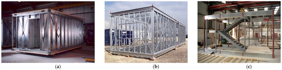 - Lawson, R.M.; Ogden, R.G. ‘Hybrid’ light steel panel and modular systems. Thin-Walled Struct. 2008, 46, 720–730. [Google Scholar] [CrossRef]