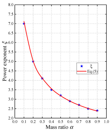 in which the power exponent ξ corresponding to the mass ratio α can be obtained by Equation (5).