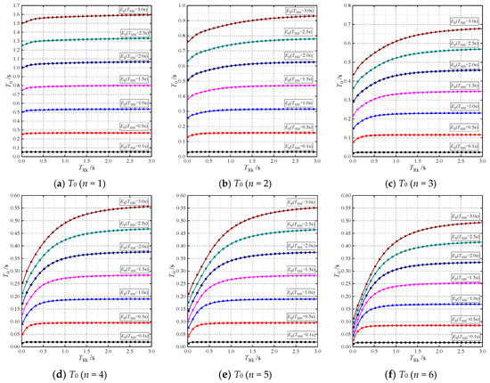 Based on this simplified equivalent method, referring to the values of in Figure 18 (α = 0.6), the period T0 for different numbers of racks can be determined using Equation (6) () and plotted in Figure 20.