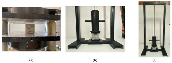 A specialized mechanical installation was developed to conduct tests on samples under repetitive dynamic (shock) loads, as depicted in Figure 3b,c. The main components of this device include:
