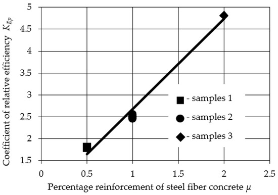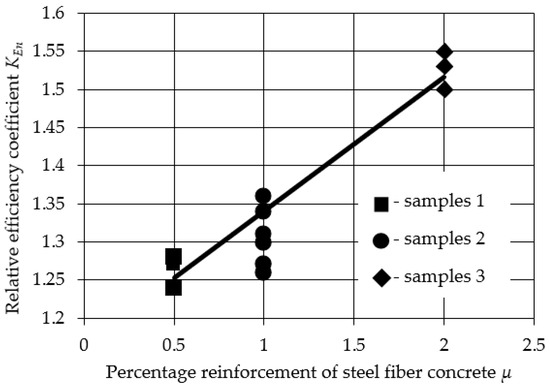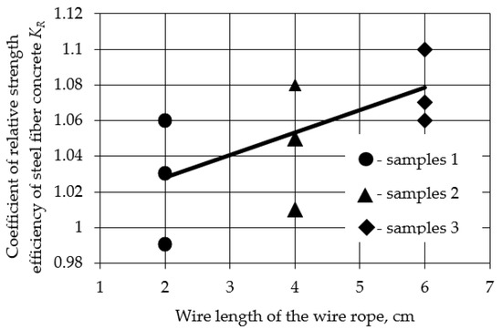 - For the first series of tests: the coefficient of relative strength efficiency of non-steel fiber concrete is defined as Kir = rnf/rsf (where rnf is the strength of the non-steel fiber concrete sample, MPa; rsf is the strength of the steel fiber concrete sample, MPa);