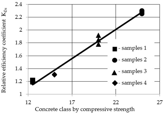 Dependence of the coefficient KEn of the concrete class of compressive strength.