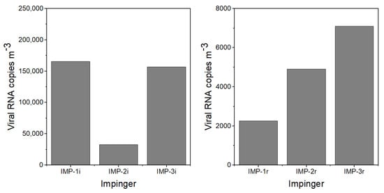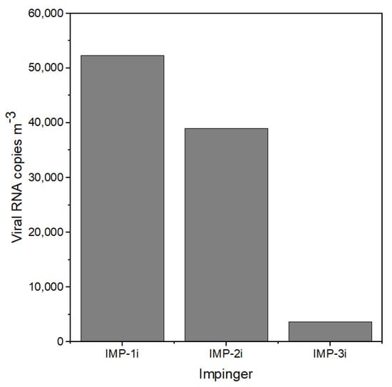 The viral aerosol was collected by 3 Glass Midget Impingers (SKC Inc., Eighty Four, PA, USA) containing 7 mL PBS. The impingers were placed along the center aisle of the room