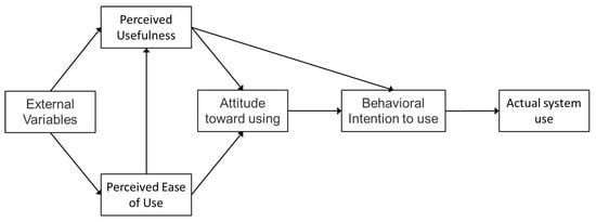- Davis, F.D. Perceived Usefulness, Perceived Ease of Use, and User Acceptance of Information Technology. MIS Q. 1989, 13, 319–340. [Google Scholar] [CrossRef]