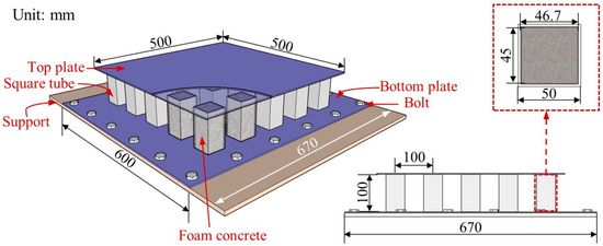 Figure 1. Three dimensional schematic view of the foam concrete-filled square tubes (FCFST) sacrificial cladding.