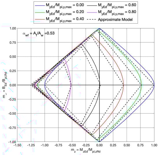 - Agüero, A.; Baláž, I.; Koleková, Z. Improved interaction formula for the plastic resistance of I- and H-sections under a combination of bending moments My,Ed, Mz,Ed, and bimoment BEd. Appl. Sci. 2022, 12, 7888. [Google Scholar] [CrossRef]