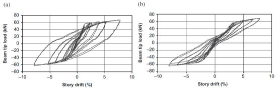 Numerical beam tip-load versus story drift envelopes of the BCJ (a) C25-A0-S3N0, C25-A15-S3N0, C25-A30-S3N0 and C25-A60-S3N0 specimens; (b) C25-A0-S0N3, C25-A15-S0N3, C25-A30-S0N3 and C25-A60-S0N3 specimens.