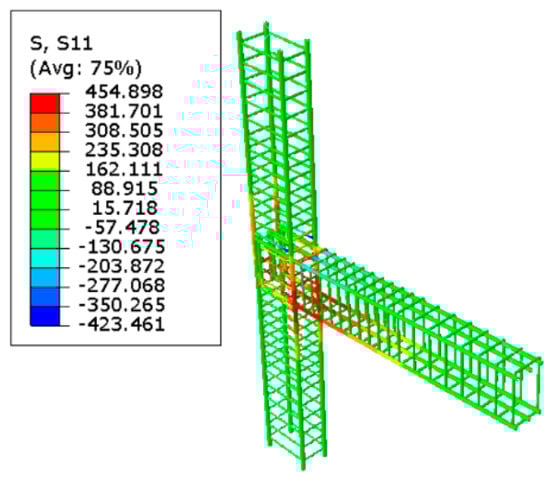 Stress in the reinforcement RC-BCJ as obtained from FE.