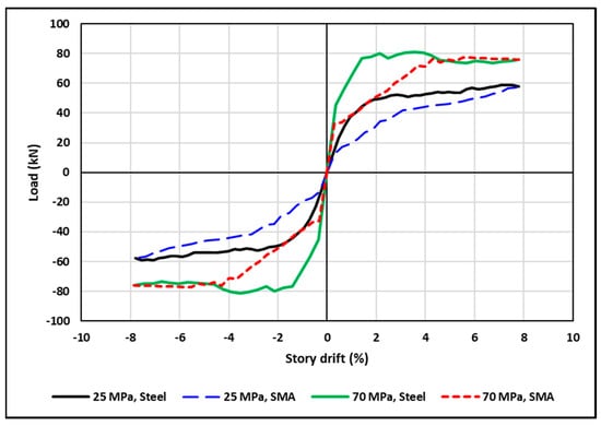 Comparison of effect of concrete strength on the behavior of BCJ between reinforced with steel and SMA.