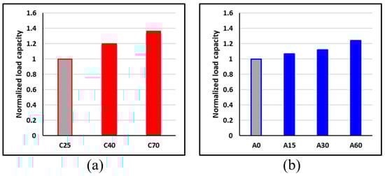 Comparisons of the effect of steel rebars on load capacity of BCJ for: (a) concrete strength; (b) axial load level.