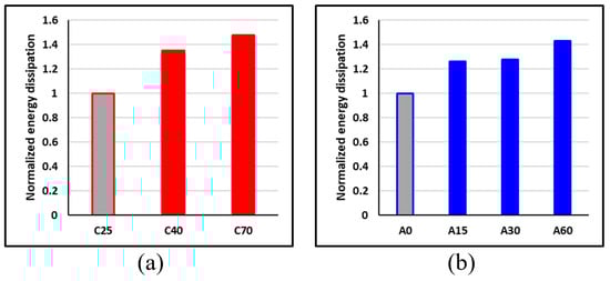 Comparisons of the effect of steel rebars on the energy dissipation of BCJ for: (a) concrete strength; (b) axial load level.