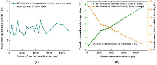 Results depict (a) measured winter air velocity and (b) air temperature and humidity in the tunnel.