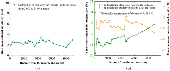 Results depict (a) measured summer air velocity and (b) air temperature and humidity in the tunnel.
