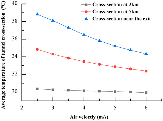 where Q represents the required cooling capacity of the cooling equipment, W. Tout represents the average temperature at the tunnel exit section, °C. T0 represents the temperature limit of the tunnel, °C. ρ represents the air density, kg/m3. cp represents the specific heat capacity of air at constant pressure, J/(kg·°C). v stands for air velocity in the tunnel, m/s. A represents the cross-sectional area of the tunnel, m2.