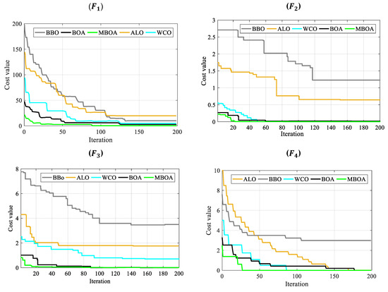 A comparison of the achieved results with several various of the latest techniques, which are Biogeography-Based Optimizer (BBO) [27], Ant lion optimizer (ALO) [28], World Cup Optimization (WCO) [29], and the basic BOA [24], are performed to confirm the results of the suggested method. The parameter setting of these algorithms is tabulated in Table 2.