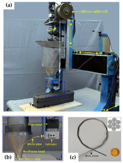 - Li, Z.; Wang, L.; Ma, G.; Sanjayan, J.; Feng, D. Strength and ductility enhancement of 3D printing structure reinforced by embedding continuous micro-cables. Constr. Build. Mater. 2020, 264, 120196. [Google Scholar] [CrossRef]