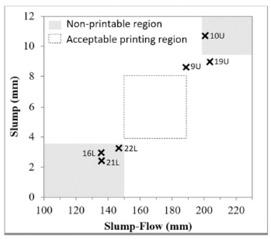 - Tay, Y.W.D.; Qian, Y.; Tan, M.J. Printability region for 3D concrete printing using slump and slump flow test. Compos. Part B Eng. 2019, 174, 106968. [Google Scholar] [CrossRef]