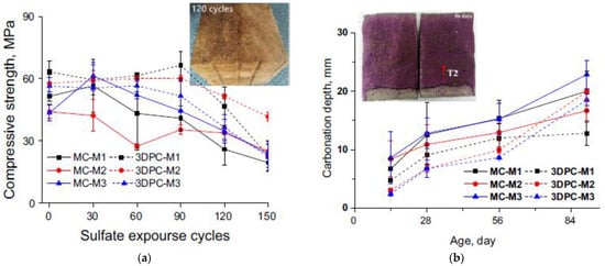 - Baz, B.; Aouad, G.; Kleib, J.; Bulteel, D.; Remond, S. Durability assessment and microstructural analysis of 3D printed concrete exposed to sulfuric acid environments. Constr. Build. Mater. 2021, 290, 123220. [Google Scholar] [CrossRef]