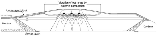 - Kim, J.K.; Chae, Y.S. A Study on the Evaluation of the Effect of the Ground Improvement of Reclaimed Land Based on Dynamic Compaction Method. J. Korean Geotech. Soc. 2006, 22, 13–26. [Google Scholar]