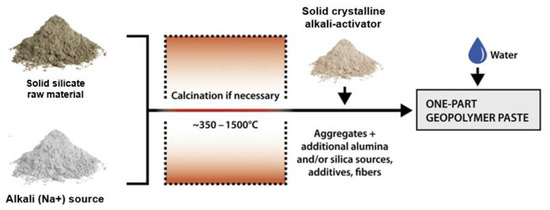 - Luukkonen, T.; Abdollahnejad, Z.; Yliniemi, J.; Kinnunen, P.; Illikainen, M. One-Part Alkali-Activated Materials: A Review. Cem. Concr. Res. 2018, 103, 21–34. [Google Scholar] [CrossRef]