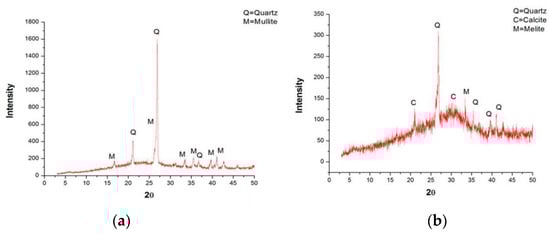 XRD analysis results of fly ash and granulated blast furnace slag: (a) fly ash; (b) granulated blast furnace slag.