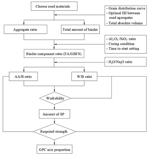 Procedure for calculating the mix proportion of one-part alkali-activated GPC.