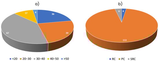 Figure 2b shows the material properties of the examined bridges. They are mostly made of prestressed concrete (PC) girders, while few units are in steel-reinforced concrete (SRC) or reinforced concrete (RC). All the bridges work on a simply supported static scheme. Data related to the type of piers is neglected since the following analyses are focused only on the deck.
