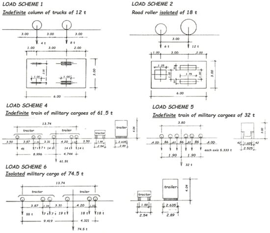 For the design of bridges, this code prescribed the combination of a military load scheme (Schemes 4, 5 and 6) with a civilian load scheme (Scheme 1), considering the most severe conditions.