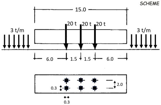 The regulation distinguishes three bridge categories and the analysis refers to bridges in the first category, which is used for major road infrastructure. The specified live loads (expressed in ton and m) in the regulation are as follows: