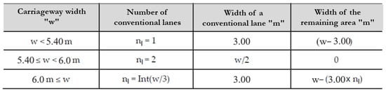 These loads should be arranged on appropriately sized lanes, assuming a conventional clearance width of 3.50 m. The minimum number of lanes is two. Only for road platform widths lower than 5 m, the minimum number of lanes can be assumed as one.