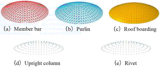 - Conducting the numerical analysis method for assessing the impact resistance of mesh shell structures [19,20]. The method involved the comparisons of different unit types, contact algorithms, and contact types to determine their effects. Subsequently, an open spherical shell parametric model was developed by applying Rhino 7 [21] software. In the meantime, an ABAQUS finite element analysis software was utilized to establish a K8 shell [22,23] numerical analysis model incorporating a purlin roof system. Finally, the proposed numerical simulation was employed to validate the accuracy of the numerical analysis method for ultimately assessing the impact resistance of the shell structure.