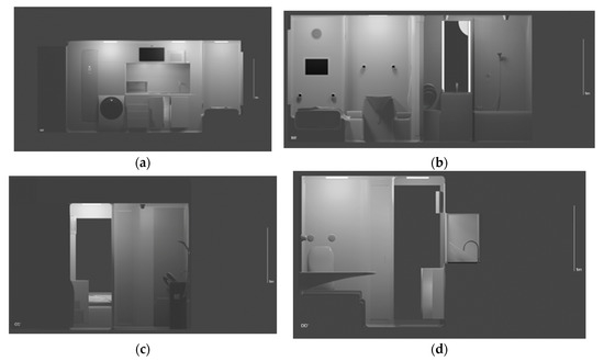 The housing prototype that is described below, scaled for a single user, includes automation systems, but is not an executable architecture design. It intended to merge the architectural shape into its canonical elements, combined with the technological components, creating an automated capsule with four functional areas: bedroom, personal hygiene, cooking, and work [22]. The architecture design fit into prefabricated modular construction and was influenced by metabolism, a movement driven by Kisho Kurokawa, advocating the architectural idea as a living organism in constant change and adaptation. The strong reference to Kurokawa’s capsules was due to their status as the house of the future (designed around 50 years ago), and because they were a synthesis considered useful for simplifying the house concept.