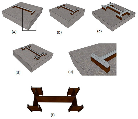 A comparative study between traditional concrete foundations and quasi-fractal composite foundations is necessary to verify the effectiveness of periodic foundations with the quasi-fractal anti-seismic H-shaped metamaterial. For this reason, two models were developed with the same upper concrete structure but with different foundations. The first one had a traditional concrete foundation and the second one had a quasi-fractal composite foundation. Each foundation had dimensions of 3.5 m × 7 m × 0.4 m, and the upper structure was formed by frames, where the columns had sections of 0.25 m × 0.19 m and beams of 0.2 m × 0.3 m. These frames were composed of two floors, where each had flat dimensions of 3 m × 3.2 m and a height of 2.9 m.