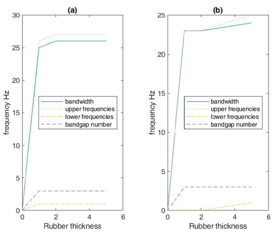 Influence of rubber thickness on band-gap’s characteristics. (a) Second fractal level. (b) Third fractal level.