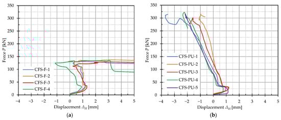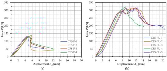 Force–displacement () curves of (a) CFS-F and (b) CFS-PU specimens.