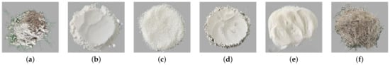 Material used to form UHPC: (a) Cement; (b) Silica fume; (c) Quartz sand; (d) Fly ash; (e) Water reducer; (f) Fiber.