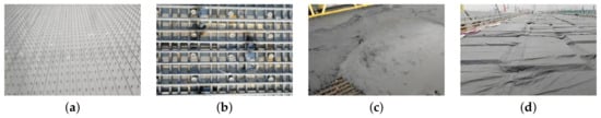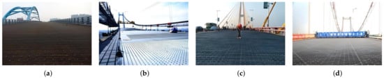 Bridge deck under construction: (a) Fochen New Bridge; (b) Hangrui Dongting Lake Bridge; (c) Queshi Bridge; (d) Fengxi Bridge.