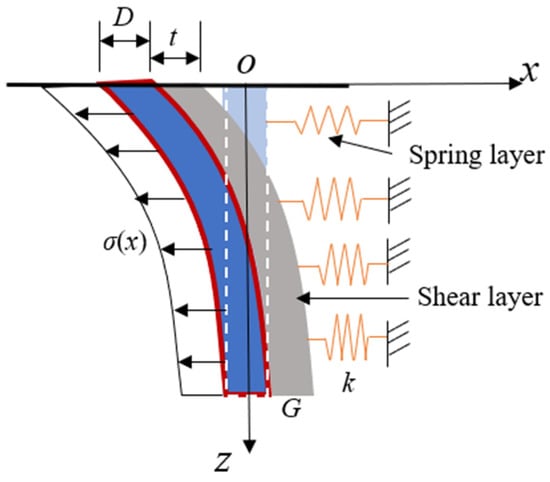 where Es denotes the elastic modulus of soils, t represents the thickness of the shear layer, and t = 11D, as recommended by Shi et al. [].